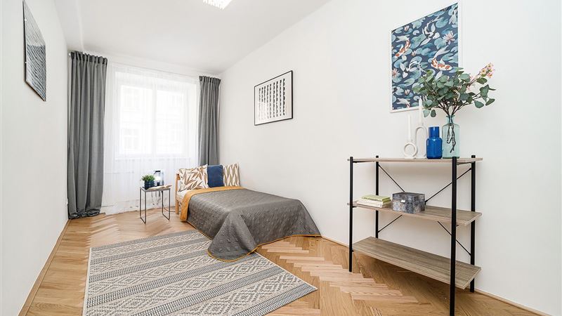 Byt se nachází v oblíbené lokalitě na rozmezí pražských Vinohrad a Žižkova s veškerou potřebnou občanskou vybaveností. Nedaleko jsou restaurace, kavárny i Náměstí Jiřího z Poděbrad. Je zde výborná dostupnost, metro Flora je pouhých 100m od bytu.